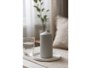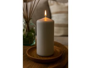 Ryhovaná Valec 65x140mm Metal mat sv. zelená sviečka