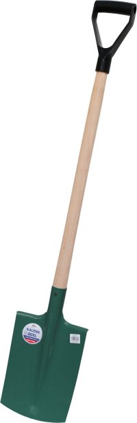 Zelený rýľ - obdĺžnik z kalenej ocele. Povrchová úprava komaxit. Násada drevená s plastovým držadlom.