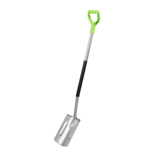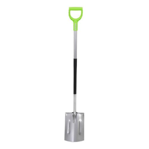 rýľ z kalenej ocele rovné zakončenie pracovnej časti spevňujúce prelisy dlhá ergonomická násada s protišmykovým povrchom pohodlná plastová rukoväť