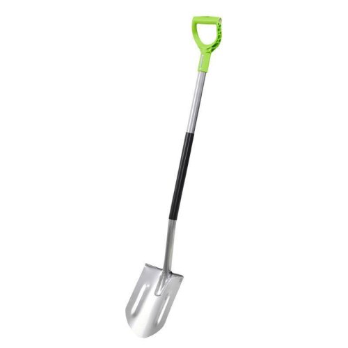 rýľ z kalenej ocele ostré zakončenie pracovnej časti spevňujúce prelisy dlhá ergonomická násada s protišmykovým povrchom pohodlná plastová rukoväť