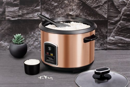 Dizajnový ryžovar z kolekcie Rosegold Metallic Line od značky BerlingerHaus. Ryžovar je špeciálny hrniec pre pohodlnú a rýchlu prípravu všetkých druhov ryže. Stačí hrniec naplniť správnym pomerom ryže a vody a ten ju úplne samostatne uvarí. Akonáhle bude ryža ideálne uvarená, prístroj sa sám vypne a prejde do režimu ohrievania. Automatická prevádzka ryžovaru Vám ušetrí veľa času.