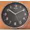Nástenné hodiny Napájanie z batérie Rozmery 200 MM Puzdro v tvare kruhu Plastové puzdro Strieborná farba puzdra Ručičkový ciferník Čierna farba ciferníka Ciferník s arabskými číslami