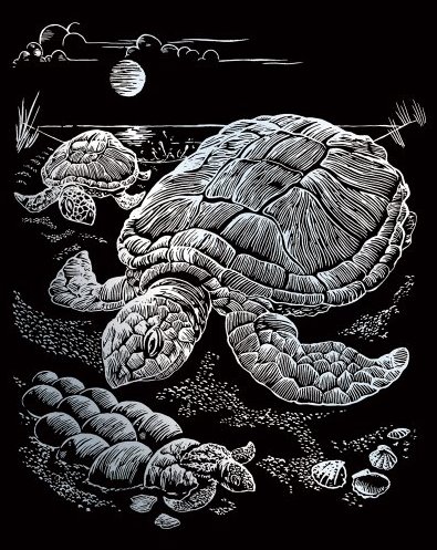 Priloženým škrabacím perom vyškriabte linky predtlačeného obrázku. Do čiernych miest bez potlače je možné vyškriabať aj ľubovoľné ornamenty alebo rámček.