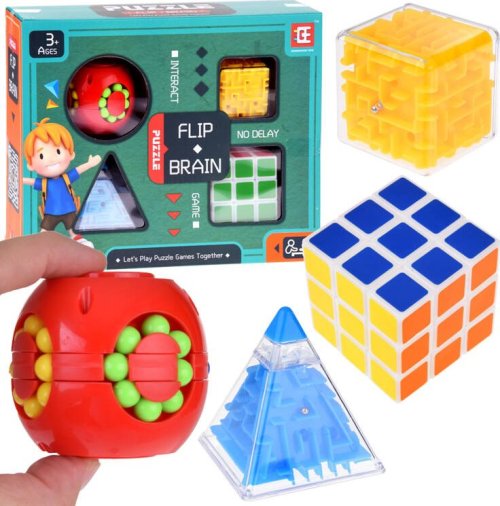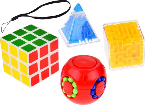 Obsah balenia: Rubikova kocka, rotujúci hlavolam, labyrint kocka, labyrint ihlan. Upozornenie : Fotografie sú iba ilustratívne. Farebné prevedenie dodávame podľa skladových zásob.