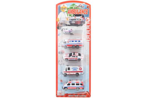 Sada 5 plastových záchranárskych áut. Rozmery auta cca 7 x 3,5 cm (podľa druhu). Rozmery balenia cca 12 x 33 x 3,5 cm. Vek 3+