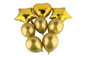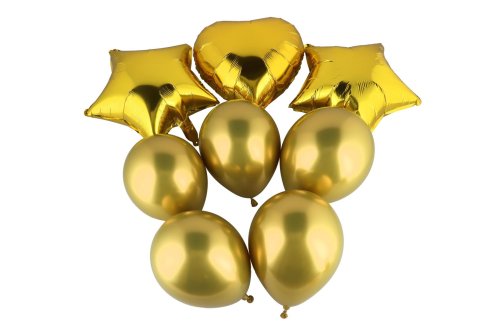 Súprava nafukovacích balónikov s elegantným dizajnom pre narodeninové oslavy, fotenie alebo výzdobu izbičky. Obsahuje celkom 8 kusov - 1x fóliový balónik v tvare srdca, 2x fóliový hviezdicový balónik a 5x okrúhlych latexových balónikov v ladiacich pastelových farbách. Balóniky je možné plniť vzduchom aj héliom.