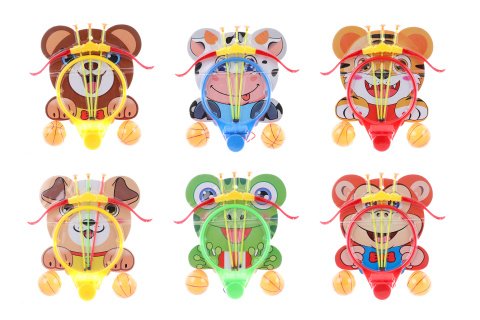 Sada obsahuje basketbalový kôš so zvieracím motívom, dve basketbalové loptičky, lúk a 3 šípy. Z druhej strany koša je terč. Materiál plast. Rozmery balenia cca 32x40x7 cm. Veľkosť loptičky cca 7 cm. Dĺžka luku 35,5 cm. Vek 3+