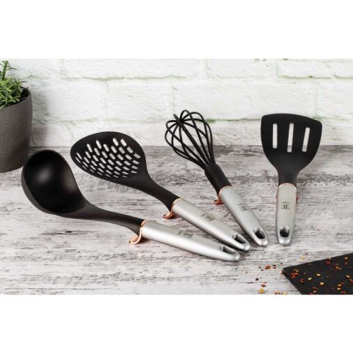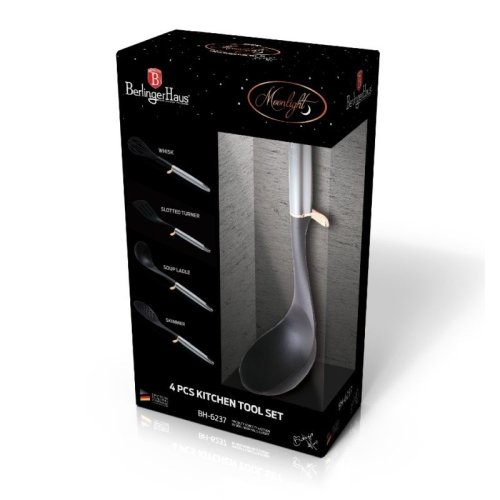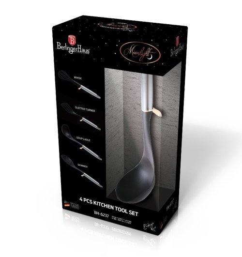 Berlingerhaus Moonlight Edition prináša praktickú sadu kuchynského náčinia 4 ks , ktorá spája funkčnosť, moderný vzhľad a šetrnosť k vášmu riadu. Náčinie je vyrobené z kvalitného nylonu, odolného voči teplotám až 220 ° C , preto je ideálny pre každodenné varenie.