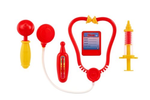 S touto doktorandskou sadou si deti môžu zahrať hru na doktorov. V praktickej lekárskej taške nájdu deti všetko potrebné. Sada obsahuje stetoskop, teplomer, injekciu a kukátko do uší alebo otoskop. Rozmery balenia 20 x 22 x 8 cm. Vhodné pre deti od 3 rokov.