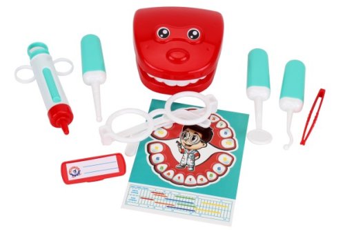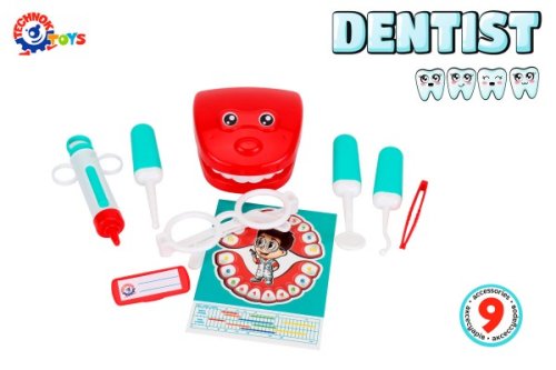 Doktorská sada predstaví deťom povolanie zubára. Sada obsahuje všetky potrebné nástroje na vyšetrenie a ošetrenie zubov ich obľúbených hračiek: vŕtačku, orálne zrkadlo, zubnú sondu, striekačku a pinzetu. S okuliarmi a odznakom sa dieťa bude cítiť ako skutočný zubár. Model čeľuste pomôže podrobnejšie sa pozrieť na zuby a podľa schémy „číslovania zubov“ sa spolu s mamičkou dieťa môže naučiť, v akom poradí zuby rastú. Zubárska súprava pomôže deťom lepšie sa zoznámiť s povolaním lekára a čo je najdôležitejšie, prekonať strach z návštevy zubnej ordinácie. Táto sada hračiek je vyrobená z vysoko kvalitného plastu. Rozmery balenia 16 x 25 x 6 cm. Vhodné pre deti od 3 rokov.