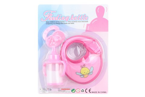 Sada doplnkov pre bábiku obsahuje fľaštičku, cumlík a podbradník. Rozmer balenia cca 21 x 16,5 x 5 cm. Vek 3+