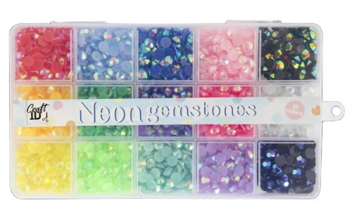 Úžasná sada obsahujúca 15 rôznych farieb neónových drahokamov s priemerom 6 milimetrov, dekoratívne kamienky/diamanty sú balené v praktickom plastovom zakladači o veľkosti 18x10 cm