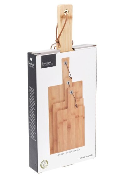 Táto sada dosiek je nielen funkčná, ale aj esteticky príjemná. Bambusový materiál je odolný a ľahko sa udržuje, čo z neho robí ideálnu voľbu pre každodenné použitie v kuchyni. Kovový krúžok a kožené lano dodávajú doskám moderný a praktický vzhľad.