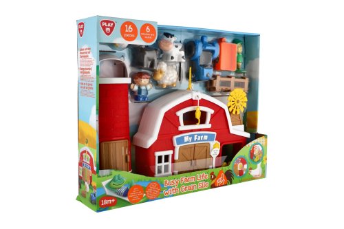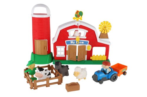 Objavte kúzlo života na farme s touto farebnou sadou, ktorá obsahuje veľkú stodolu so silom na obilie, farmárov, zvieratká a ďalšie doplnky. Po zapnutí sa ozvú realistické zvuky, ktoré hru ešte viac oživia. Vďaka pevnému plastovému prevedeniu a zaobleným hranám je hračka bezpečná aj pre menšie deti. Rozvíja detskú predstavivosť a jemnú motoriku. Rozmery balenia 50 x 39 x 10 cm. Vhodné pre deti od 18 mesiacov.