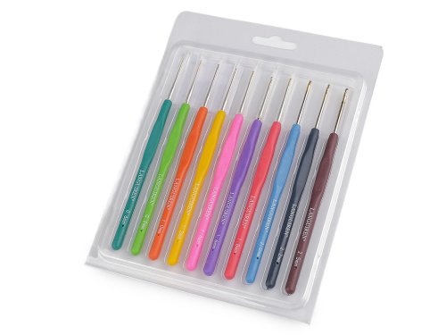 Súprava obsahuje 10 háčikov nasledujúcich veľkostí: [0,6; 0,8; 1; 1,2; 1,4; 1,6; 1,8; 2; 2,2; 2,5.]