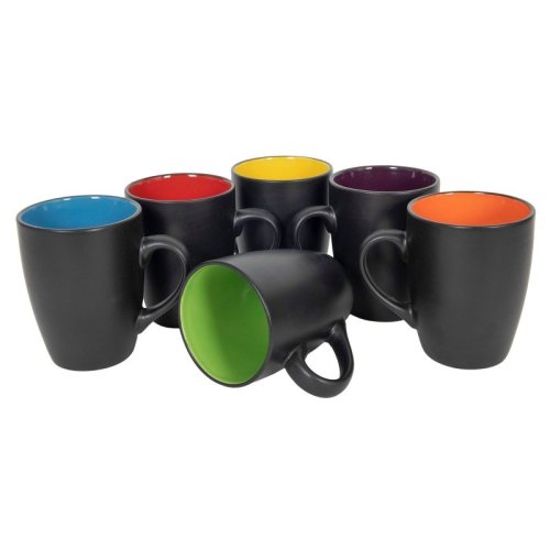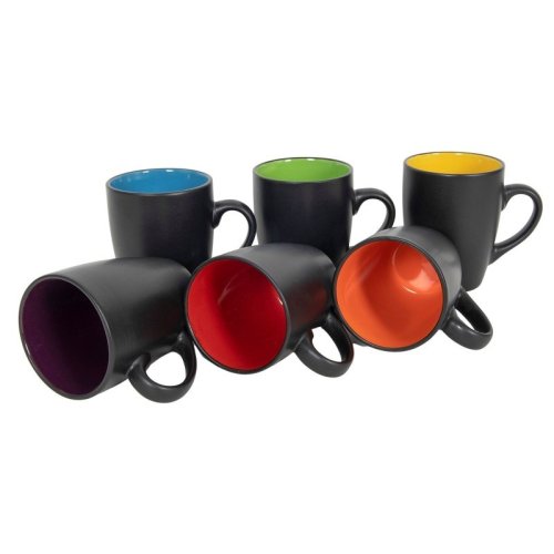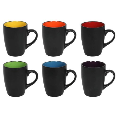 Porcelánové hrnčeky na kávu a čaj s objemom 340 ml - zvonku čiernej a zvnútra farebné- rozmer hrnčeka: 12 cm x 10,5 cm (priemer vrátane rukoväte x výška)- materiál: porcelán- farba: matná čierna zvonku / farebná vo vnútri- každá šálka v inej vnútornej farbe: modrá, zelená, červená, oranžová, žltá, fialová- objem: 340 ml - ľahká údržba - možno umývať v umývačke