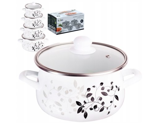 Pokiaľ milujete varenie a hľadáte hrnce najvyššej kvality, táto 8dielna sada je pre vás. Tieto hrnce, vyrobené z vysoko kvalitnej uhlíkovej ocele potiahnuté smaltom, sú nielen elegantné, ale aj mimoriadne funkčné. Vďaka svojej univerzálnej veľkosti a kompatibilite s rôznymi typmi sporákov (indukčné, plynové, keramické, halogénové) tieto hrnce určite splnia vaše očakávania. Každý hrniec v sade je vybavený praktickým skleneným vekom s odvetrávacím otvorom. To umožňuje efektívny odvod prebytočnej horúcej pary a dáva vám plnú kontrolu nad procesom varenia. Smaltované hrnce majú hladký povrch, ktorý zabraňuje pripaľovaniu jedla ku dnu. Sú odolné voči poškriabaniu, vysokým teplotám. Navyše sú bezpečné pre zdravie, nereagujú s potravinami a sú ideálne na skladovanie potravín. Rukoväte zaisťujú bezpečné prenášanie hrnca a okraj zaistený oceľovou páskou chráni pred poškodením smaltu v hrnci. Sada obsahuje: hrniec s priemerom 18 cm, objem 2.1 litra s pokrievkou / hrniec s priemerom 20 cm, objem 3.1 litra s pokrievkou / hrniec s priemerom 22 cm, objem 4.3 litra s pokrievkou / hrniec s priemerom 24 cm, objem 5.5 litra s pokrievkou. 3-vrstvový smaltovaný povlak vypaľovaný pri teplotách do 850 ° C dokonale chráni nádobu. Povrchová úprava je odolná, zdravá a antibakteriálna. Hrubostenný materiál 0.6 mm. EAN 5902041305012