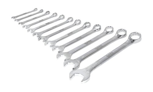 Profesionálne kombinované kľúče vyrobené z vysoko kvalitnej nástrojovej ocele 31CRV3, ktorá ponúka lepší výkon ako tradičná oceľ CrV. Kľúče sú vysoko odolné voči rôznym zaťaženiam, vrátane ohybu a oderu. Aby tieto vlastnosti dosiahli, sú tieto nástroje vyrobené z legovanej nástrojovej ocele s prímesou zlúčenín chrómu a vanádu.