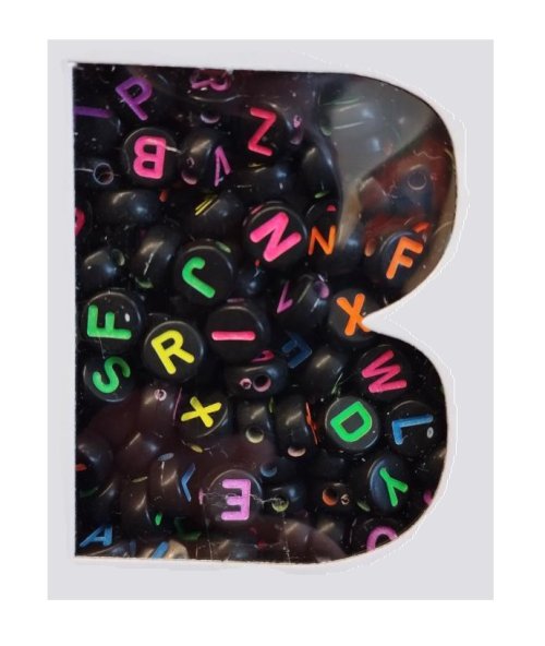 Sada korálok - písmenká čierne + 1 meter povrázok
