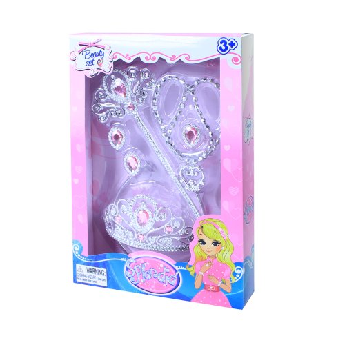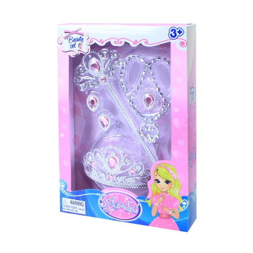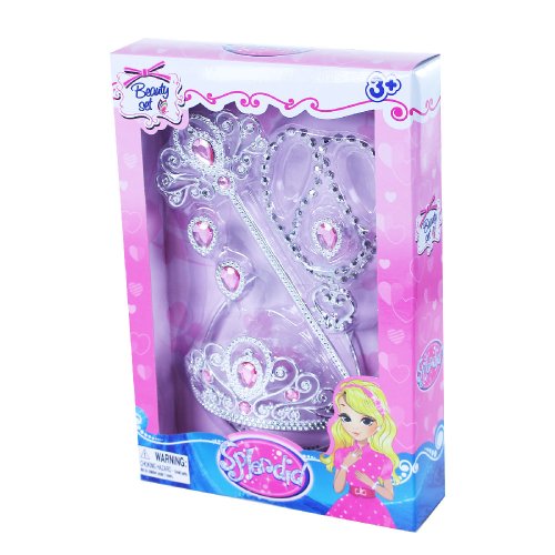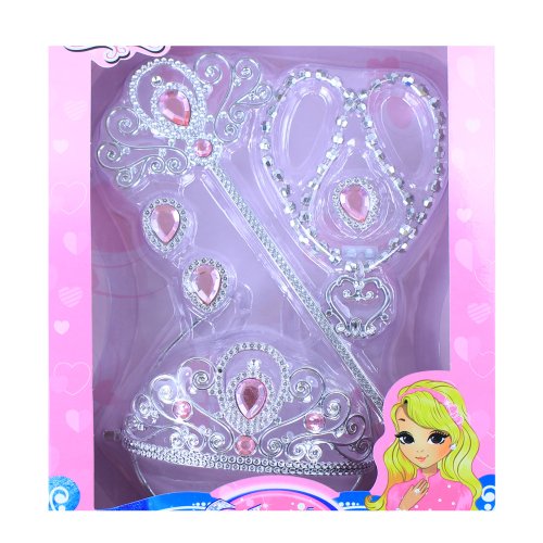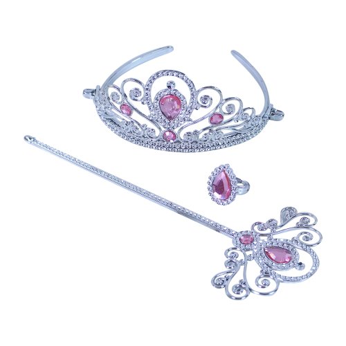 Krásna korunka s náušnicami, náhrdelníkom, prstienkom a paličkou. Doplnky sú zdobené ružovými prvkami. Perfektná sada ku kostýmu! Odporúčané pre dievčatá od 3 rokov.