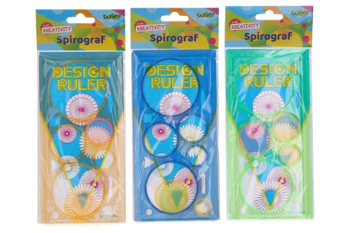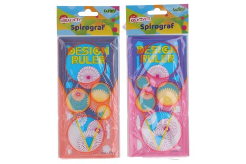 Sada kresliacich šablón - spirograf. Sada ozubených a neozubených koliesok, ktoré podporujú kreativitu. 5 farebných variantov: červená, oranžová, ružová, zelená, modrá.