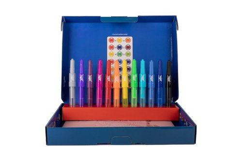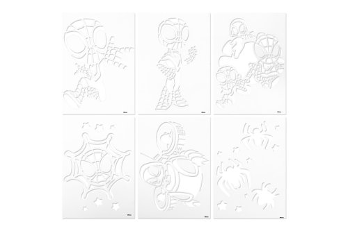 Sada maľovania so spray fixkami Spidy – sada obsahuje praktický papierový box, 12 spray fixiek, 14 ks A5 šablón a 2 ks A4 šablóny.