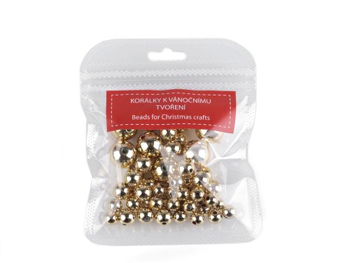 Súprava plastových metalických korálikov sa bude hodiť predovšetkým k vianočnému tvoreniu. Korálky majú rôzne veľkosti, nádherný metalický povrch a lesk, ktorý dodá každému výrobku elegantný a slávnostný vzhľad. Ich lesk vynikne na korálkových vločkách z drôtov, dekoračných stromčekoch a pod. Využijete ich aj na výrobu bižutérie, hodia sa do náramkov i náhrdelníkov, dajú sa použiť samostatne alebo ako ozdobný oddeľujúci diel medzi ďalšie korálky. 1 vrecko obsahuje 48 ks korálikov.