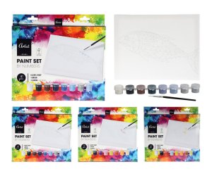 Sada na maľovanie 10diel. (akryl. farby 8 ks, plátno 24 x 30 cm, štetec). sada obsahuje: - akrylové farby 8 ks, mix farebných variantov - plátno, rozmery: 24 x 30 cm - štetec Plátno, kde sa vyfarbuje predtlačený …