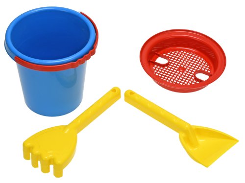Súprava na piesok je určená pre všetkých malých nezbedníkov, ktorí sa radi hrajú na pieskovisku. Sada obsahuje sitko, lopatku, hrabličky a vedro. Pre deti od 10 mesiacov.