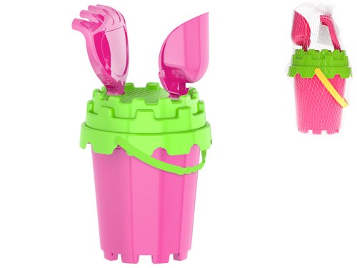 Sada na piesok ružová - vedro 15 cm, lopatka, hrabičky, sitko