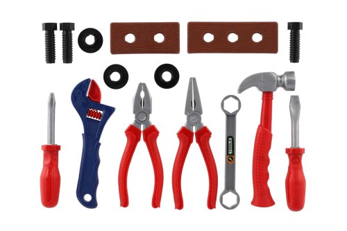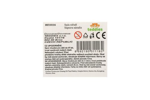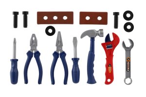 Neoddeliteľnou súčasťou výbavy každého malého majstra je poriadna sada náradia. Táto sada plastového náradia sa dodáva v sáčku a náradie vyzerá ako skutočné. Rozmery balenia 21 x 24 x 5 cm. Vhodné pre deti od 3 rokov.