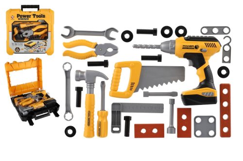 Táto detská sada náradia s vŕtačkou je ideálnym darčekom pre malých domácich majstrov, ktorí radi napodobňujú prácu dospelých. Sada obsahuje všetko potrebné pre malých opravárov v praktickom plastovom kufríku. Hračka je vybavená zvukovými efektmi a napájaná packom na batérie (3xAAA, nie sú súčasťou balenia), kompatibilná s ďalšími nástrojmi rovnakej značky. Veľkosť vŕtačky: 16 x 17 cm Rozmer balenia: 26 x 25 x 9 cm Vhodné pre deti od 3 rokov