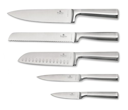 - Materiál: nerezová oceľ 3cr13 s rukoväťou v saténovom a zrkadlovom lesku. - Kuchársky nôž 20 cm - Krájací nôž 20 cm - Nôž na chlieb 20 cm - Úžitkový nôž 12,5 cm - Nôž na okrajovanie 9 cm - Stojan BAMBOO - Farba