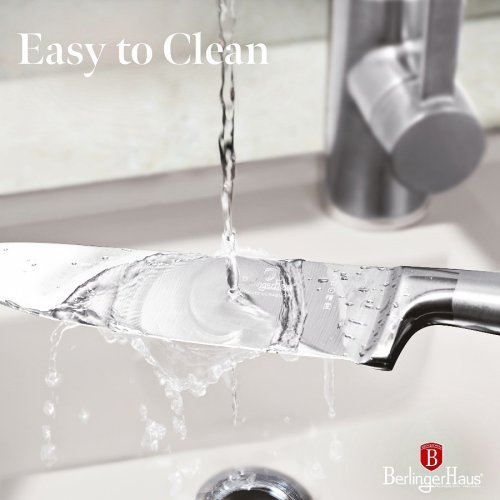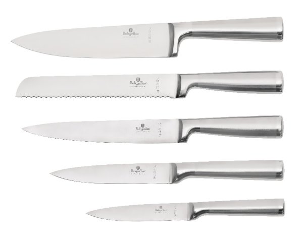 - Materiál: nerezová oceľ 3cr13 s rukoväťou v saténovom a zrkadlovom lesku. - Kuchársky nôž 20 cm - Krájací nôž 20 cm - Nôž na chlieb 20 cm - Úžitkový nôž 12,5 cm - Nôž na okrajovanie 9 cm - Ocieľka - Stojan BA