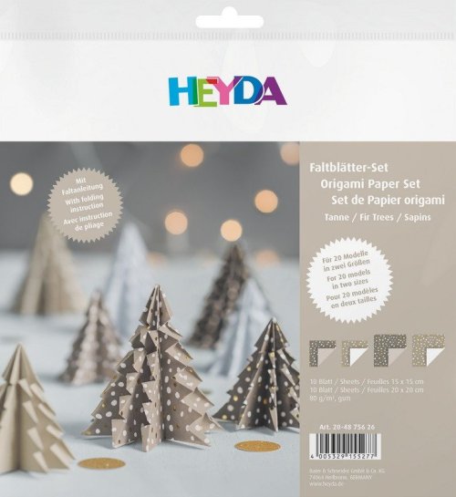 Sada obsahuje 20 listov v dvoch veľkostiach (15×15 cm, 20×20 cm) a dvoch farbách. Gramáž papiera 80 g/m2. Vysoko lesklá zlatá povrchová úprava. S návodom na prekladanie. Origami je stará japonská technika skladania papiera.