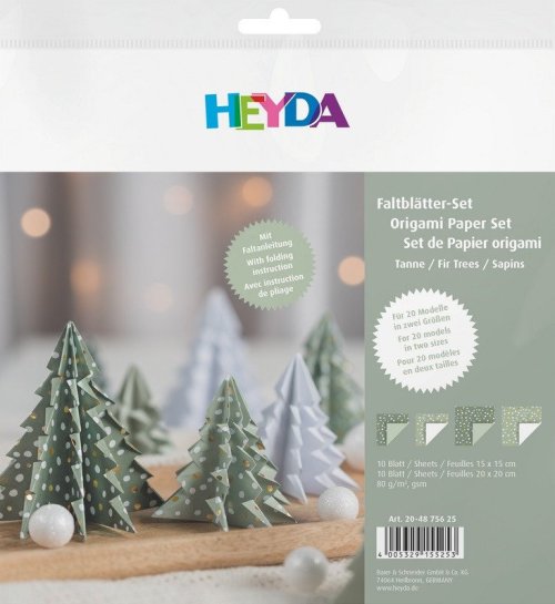 Sada origami papierov 20x20 a 15x15 - stromčeky zelené