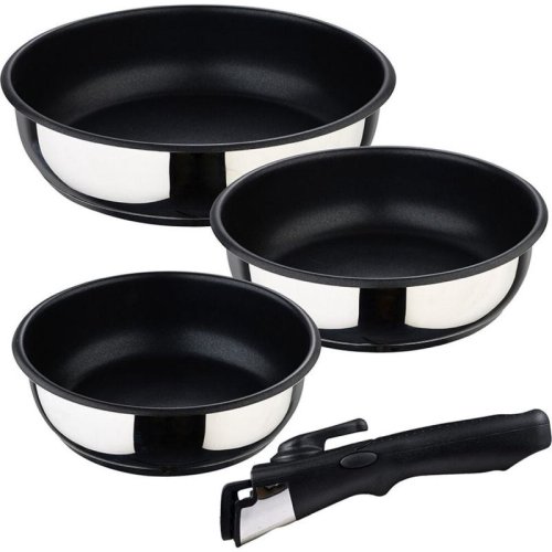 Sada panvíc s odnímateľnou rukoväťou Bergner Click&Cook BG-32292-MM, ktorá prináša do vašej kuchyne nielen kvalitu, ale aj praktickosť. Táto sada obsahuje tri panvice s priemermi 18 cm, 20 cm a 24 cm, ktoré sú vyrobené z vysoko kvalitnej nerezovej ocele a opatrené nepriľnavým povrchom. Súčasťou sady je tiež odnímateľná ergonomická rukoväť, ktorá uľahčuje manipuláciu a skladovanie.