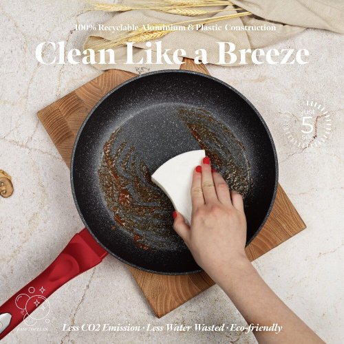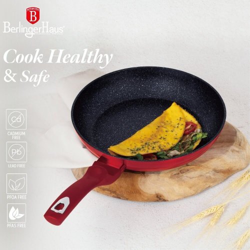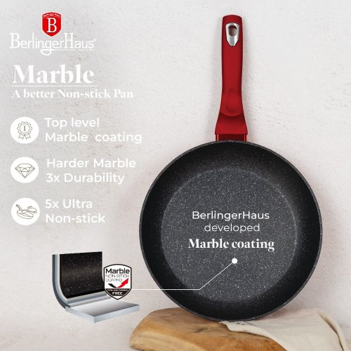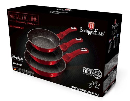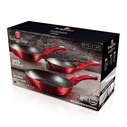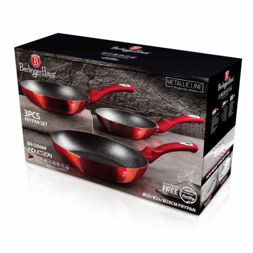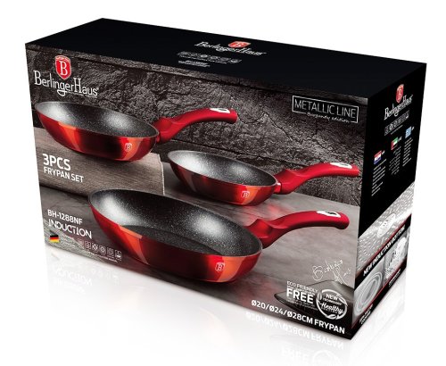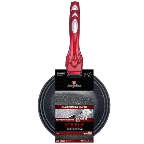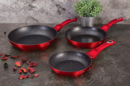 - materiál: kovaný hliník s mramorovým povrchom- farba: červená metalická- Sada 3 ks obsahuje:- Panvica pr. 20 x 4,2 cm- Panvica pr. 24 x 5 cm- Panvica pr. 28 x 5,5 cm - 3 vrstvový nepriľnavý povrch s mramorovým …