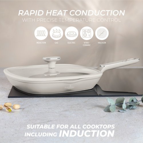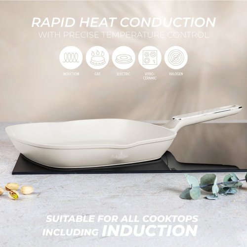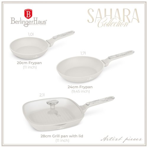 Vstúpte do sveta luxusu a precíznosti s touto exkluzívnou sadou panvíc Sahara Marble Collection. Matná krémová s elegantným mramorovým dizajnom dodá vašej kuchyni štýl a dotyk noblesy, zatiaľ čo TitanPro povrch zaistí dokonalý výkon pri každom varení.