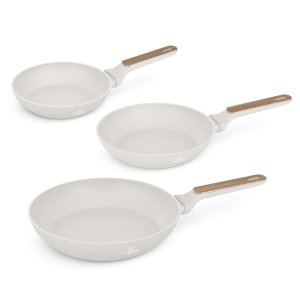 Objavte dokonalú rovnováhu medzi eleganciou a funkčnosťou s touto exkluzívnou sadou panvíc Sahara Nordic Collection. Matná krémová farba s jemnými drevenými detailmi prináša do vašej kuchyne prírodný a nadčasový štýl, zatiaľ čo titánový nepriľnavý povrch TitanPro zaistí perfektné výsledky pri každom varení.