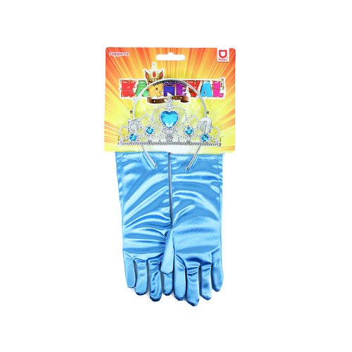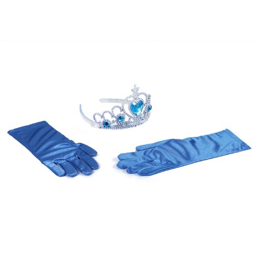 Exkluzívna sada pre všetky zimné princezné! Súprava obsahuje striebornú čelenku zdobenú modrými kamienkami a modré rukavice. Tieto štýlové doplnky sa ti budú perfektne hodiť ku kostýmu!