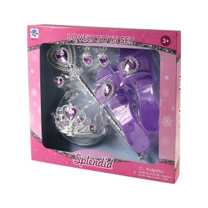 Premeň sa na skutočnú princeznú! Táto krásna súprava obsahuje všetko, čo malá parádnica potrebuje k svojim rozprávkovým dobrodružstvám. Elegantné črievičky, korunku, náušnice, prstienok a kúzelnú paličku. Vďaka strieborno-fialovej farebnej kombinácii pôsobí celý set veľmi slávnostne a očarujúcim dojmom. Hodí sa nielen na hranie doma, ale aj na karnevaly, narodeninové oslavy či detské párty.