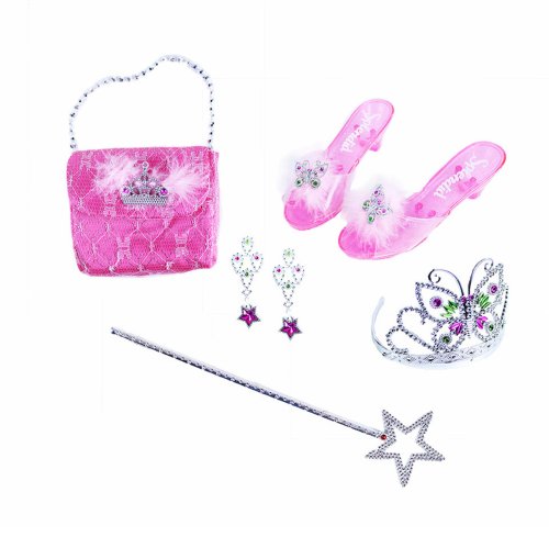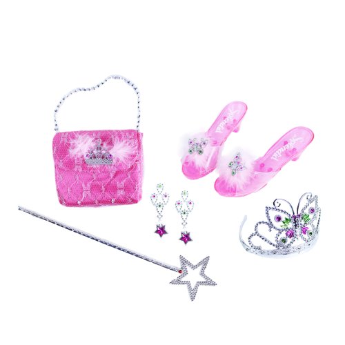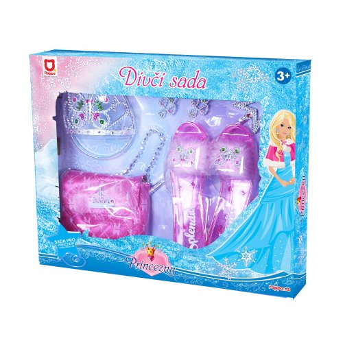 Stať sa na chvíľu rozprávkovou princeznou? Vďaka tejto sade to zvládneš aj ty! Set obsahuje črievičky, kabelku, čelenku s korunkou, náušnice a prútik. Veľkosť črievičiek je cca 19 cm. Odporúčané pre dievčatá od 3 rokov.
