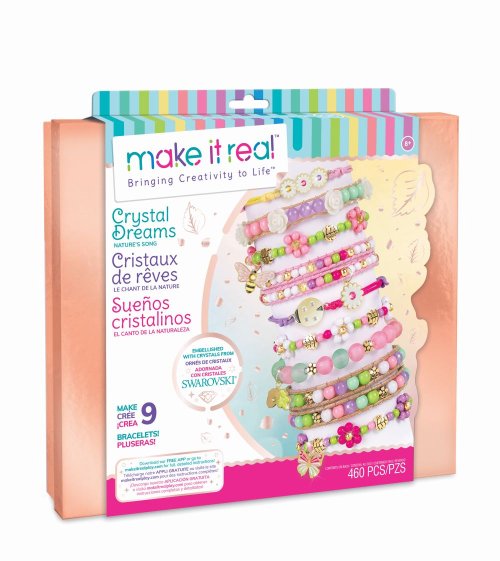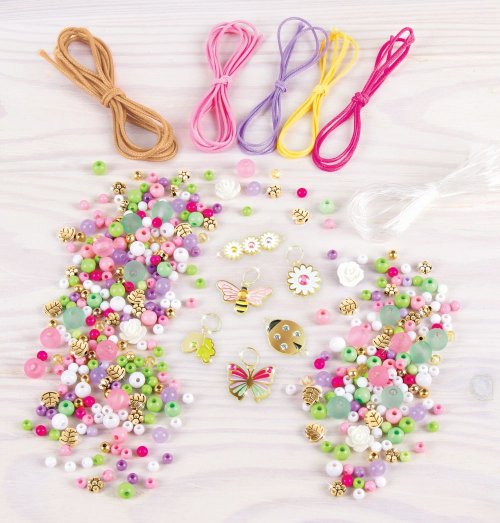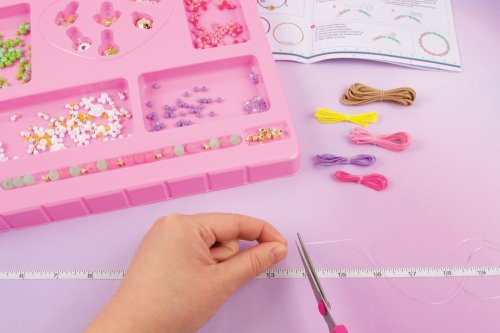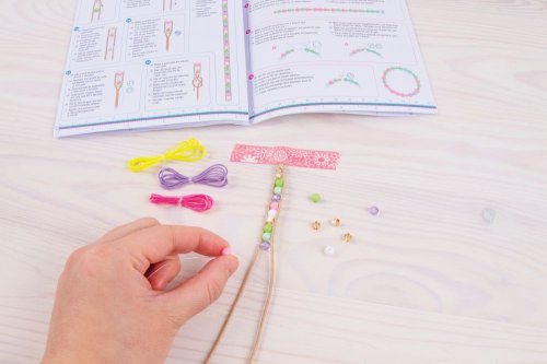 Sada obsahuje 5 farebných šnúr (4,5 m), elastickú šnúru (6 m), korálky, prívesky s kryštálmi SWAROVSKI a inštrukcie. Vhodné od 8 rokov.