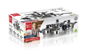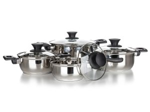 Riad je možné používať na všetky typy sporákov. Pokrievky sú vyrobené z odolného skla a majú otvor na paru pre dokonalú kontrolu nad varením. Povrchová úprava nerezový lesk (vnútri aj zvonku). Riad sa ľahko udržuje, možno umývať v umývačke.