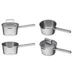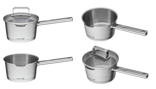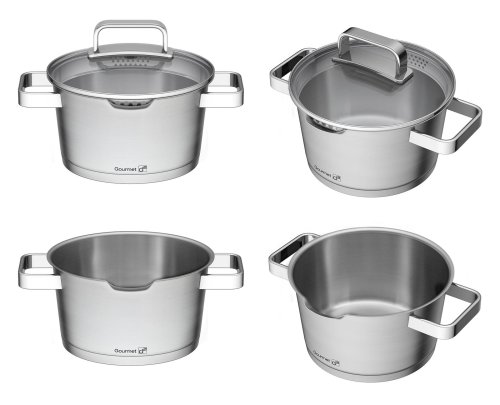 Kvalitné sendvičové dná bez vzduchových vreciek s hrúbkou 5,7 mm pri hrncoch do priemeru 16-24 cm a 4,2 mm pri panvici s priemerom 24 cm. Silné steny s hrúbkou 0,7 mm veľmi efektívne a rovnomerne rozvádzajú teplo. Neuveriteľne vysoká odolnosť proti poškodeniu a korózii. Hrnce zvládajú teploty do 350 °C, pokrievky do teploty 180 °C. Hrnce sú vhodné na všetky typy sporákov - na indukciu, plyn aj varnú dosku. Dizajnovo čisté línie a dokonalý tvar sú ozdobou každej kuchyne.