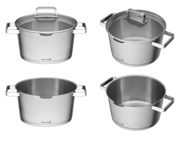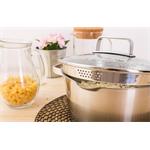 Obrovskou výhodou oproti bežne používaným hrncom sú výparníky/cedníky, ktorými sme osadili všetky pokrievky v sade. Už si nepopálite ruky pri zlievaní horúcej vody zo zemiakov či cestovín. Pre rýchlejšie uvedenie surovín do varu len pootočíte pokrievkou a výparník/cedník sa uzavrie.