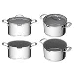 Celonerezová sada riadu G21 Gourmet Miracle je zo špeciálnej potravinárskej ocele 18/10 CrNis s vnútorným nepriľnavým povrchom GREBLON® C3+ s vysokou tvrdosťou a odolnosťou. Všetky hrnce aj panvice majú silné sendvičové dná na dokonale rovnomerné rozvádzanie tepla a sú vhodné pre každý typ ohrevu. Vďaka svojim jedinečným vlastnostiam a dokonalému prevedeniu je greblonový riad v nadčasovom dizajne veľmi obľúbený a vydrží dlhé roky.