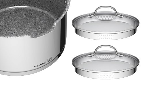 Celonerezová sada s nepriľnavým povrchom GREBLON® C3+ zaujme na prvý pohľad unikátnou vnútornou vrstvou nerezového riadu G21 Gourmet Miracle. Špeciálna potravinárska oceľ 18/10 CrNi s vrstvou GREBLON® C3+ je dokonalým materiálom vďaka svojim jedinečným vlastnostiam.