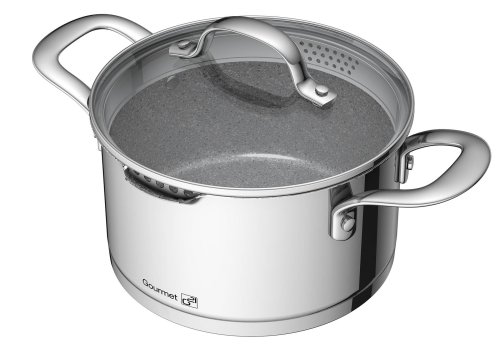 GREBLON® sa vyznačuje vysokou tvrdosťou. Existuje niekoľko typov greblonových vrstiev. Na riade G21 Gourmet Miracle nájdete tú najlepšiu a najkvalitnejšiu z nich. Trojvrstvový povrch GREBLON® C3+ so sklokeramickou výstužou je mimoriadne tvrdý, odolný proti poškriabaniu a opotrebovaniu a hlavne - nepriľnavý. Áno, GREBLON® C3+ dáva hrncom schopnosť odolať prilepeniu surovín k vnútorným stenám. Povrch patrí do skupiny PTFE (teflón).